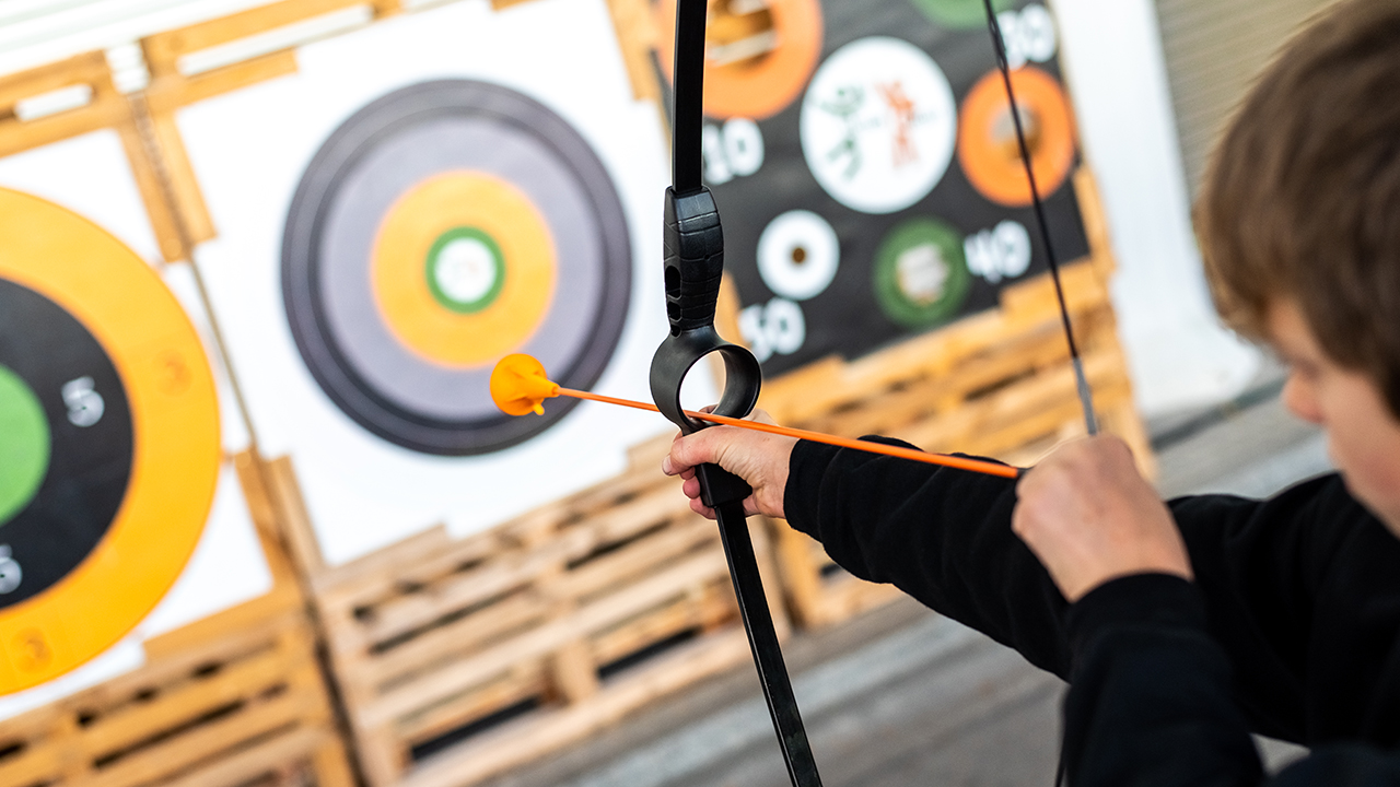Arco e flecha mirando no alvo